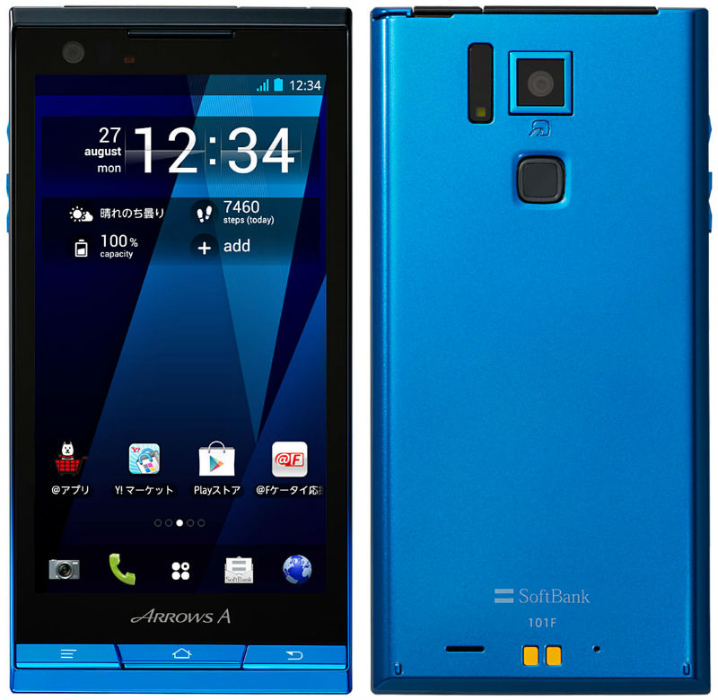 Старт продаж AQUOS PHONE Xx SoftBank 106SH запланирован на начало июля этого года. ARROWS A SoftBank 101F: Компания Fujitsu также представила для японского оператора мобильной связи SoftBank Mobile свою модель пыле и водонепроницаемого смартфона ARROWS A SoftBank 101F, работающего под управлением операционной системы Android 4.0 Ice Cream Sandwich, оснащенного высокопроизводительным двухъядерным 1,5 ГГц процессором Qualcomm MSM8960, 4.3-дюймовым AMOLED дисплеем с qHD разрешением, 13.1 МП камерой и встроенным сенсором отпечатков пальцев, на котором завязана система управлением этого смартфона. Технические характеристики ARROWS A SoftBank 101F: - Поддержка стандартов связи: 3G WCDMA/HSDPA (42 Mbps) 900/1500/2100 МГц (национальные и международные); GSM 900/1800/1900