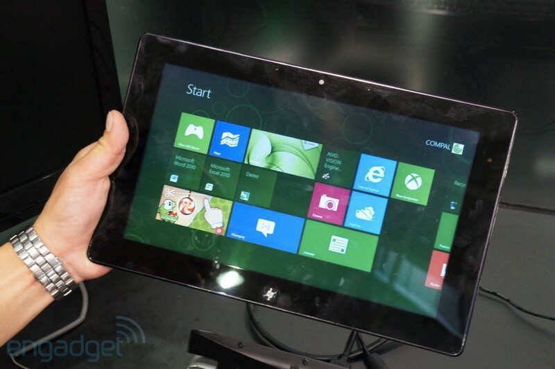 В ходе выставки Computex 2012 компания AMD напомнила о себе представив планшетный компьютер основанный на базе гибридного процессора AMD Trinity A6. Более того, новинка работает под управлением операционной системы Windows 8. Устройство исполнено компанией Compal и может похвастать 11,6-дюймовым сенсорным дисплеем, который работает при разрешении 1366 x 768 пикселей.